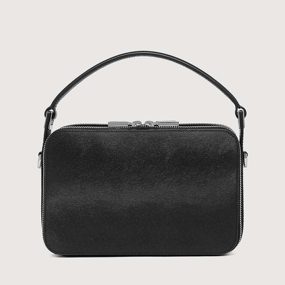 A modern classic reimagined, the Pan collection is crafted from luxurious haircalf leather that exudes sophisticated charm. Designed for versatility, Pan features a detachable and adjustable crossbody strap, offering customizable carrying options.