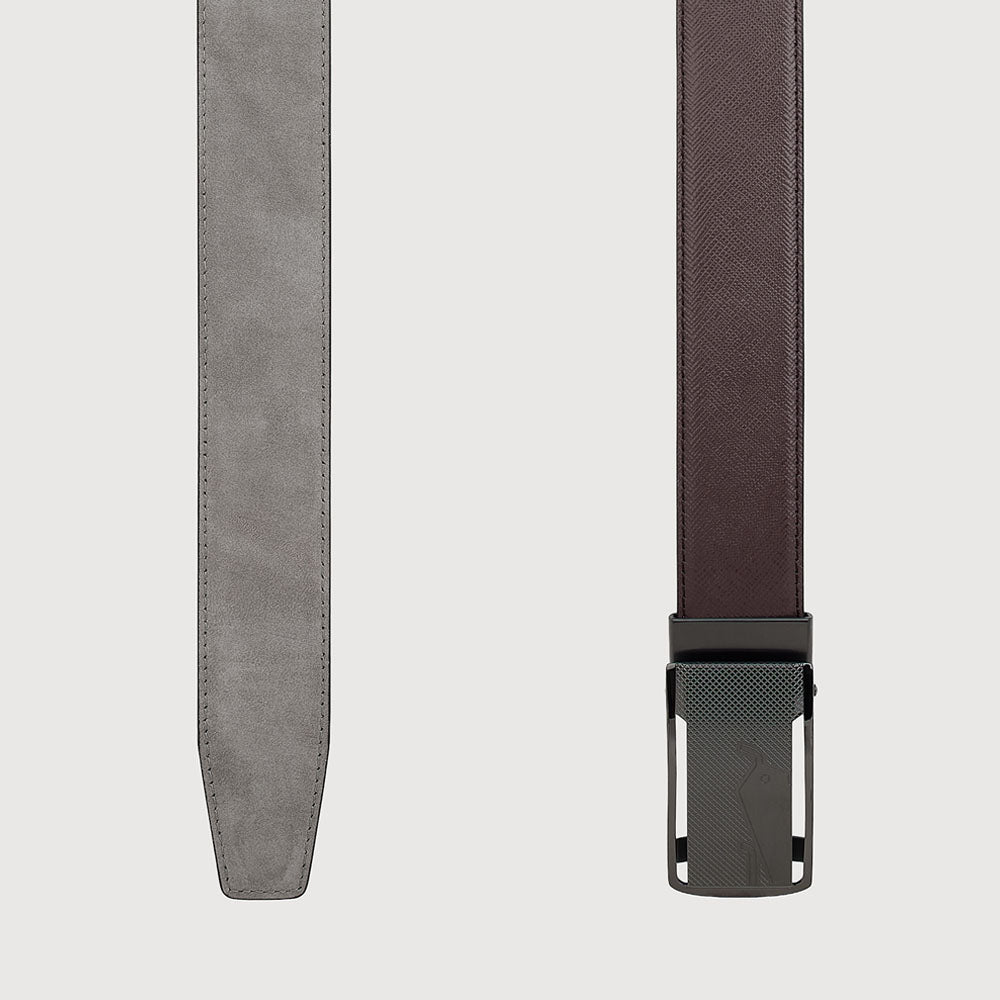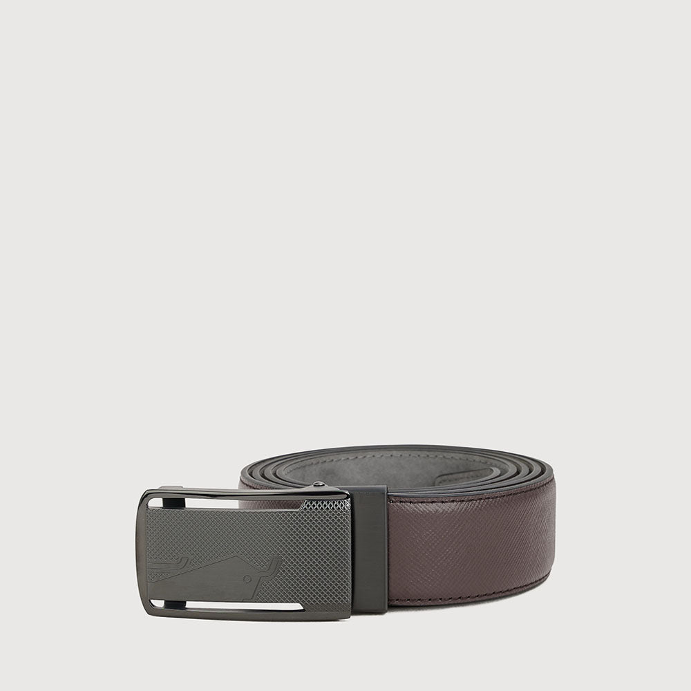 SAFFIANO PRINTED LEATHER BELT WITH GUN SATIN FINISH IN STAINLESS STEEL NEEDLE BUCKLE