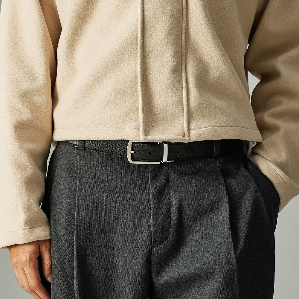 双面 SAFFIANO 印花皮革腰带,镍缎面处理,不锈钢针扣
